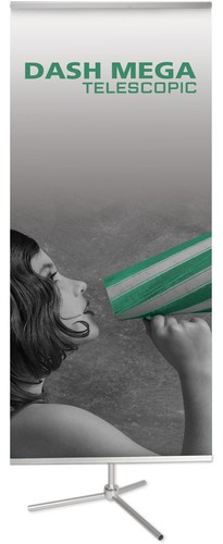 A well crafted, single-sided tripod banner stand that is very stable, quick and easy to erect. Manufactured of anodized aluminum and is available as a double-sided unit as well. Carry bag is included. Variable height up to 93.5"h. |